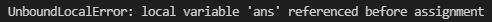 해결방법: 함수내에서 사용시, global ans와 같이 전역변수 선언을 해주어야한다.
