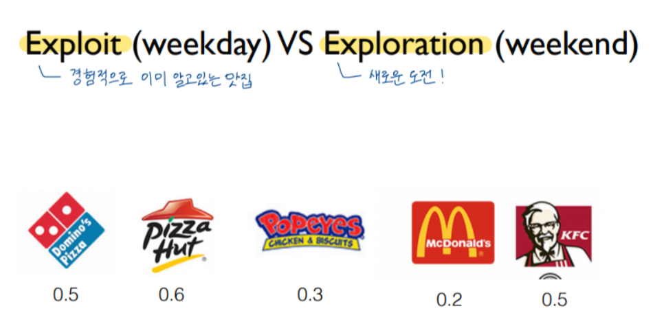 강의에서는, 같은 동네에 10년쯤 살았으면, 맛집을 더 잘 알테니 Exploit의 선택 비중을 높이는 것과 같다고 설명했다 ;)