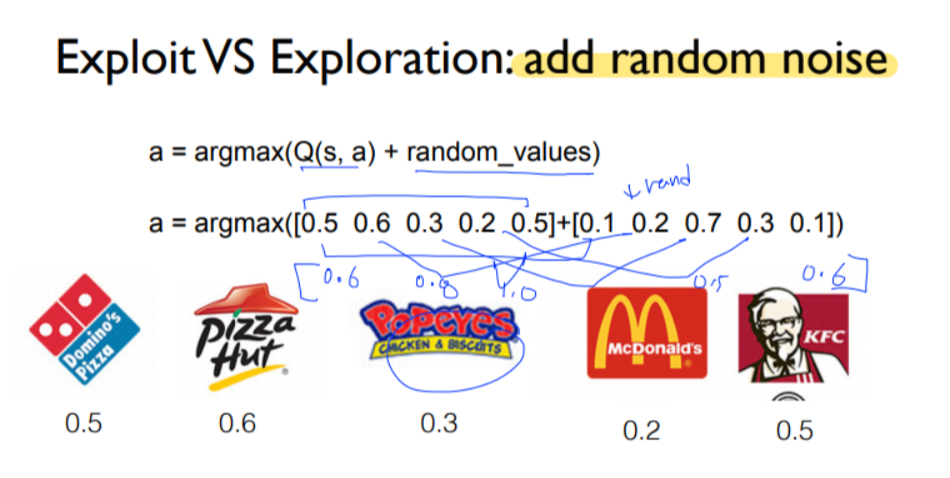 Exploration은 랜덤하게 새로운 도전으로 값을 선택하는 방식이다.