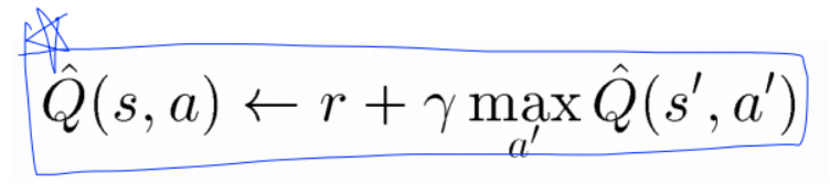 Q[state, action] = reward + dis * np.max(Q[new_state, :])