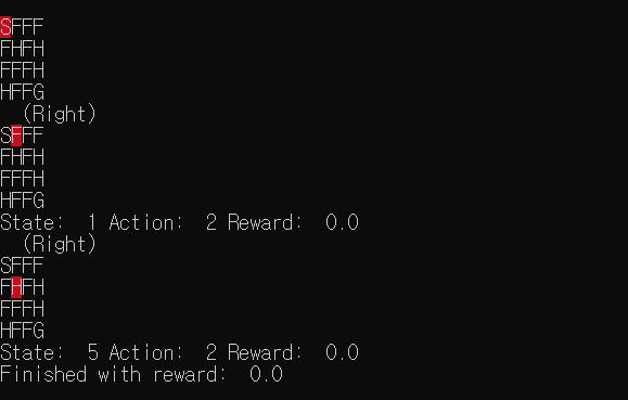 print("State: ", state, "Action: ", action, "Reward: ", reward)