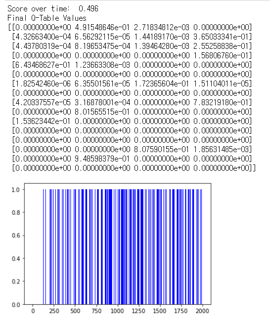 print("Score over time: ", str(sum(rList)/ num_episodes))