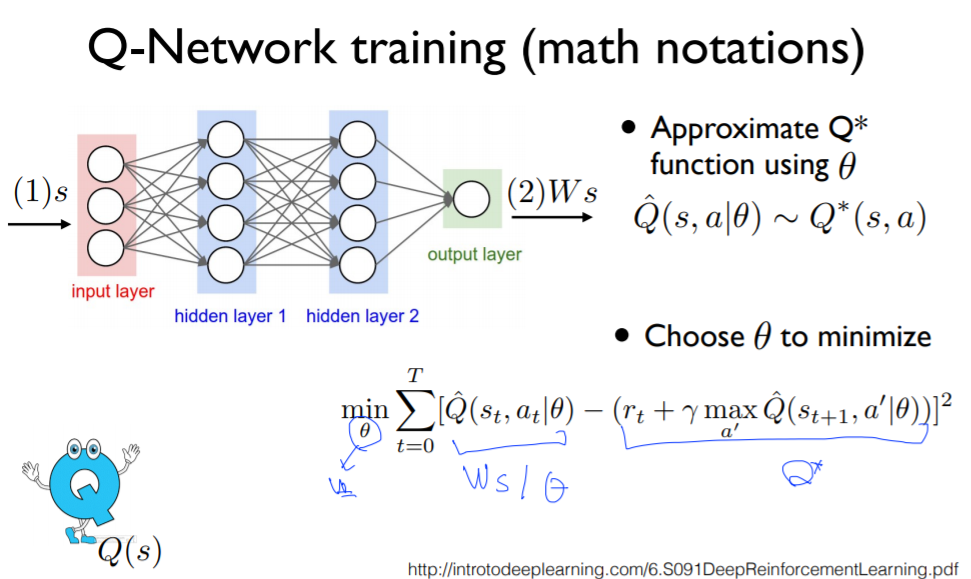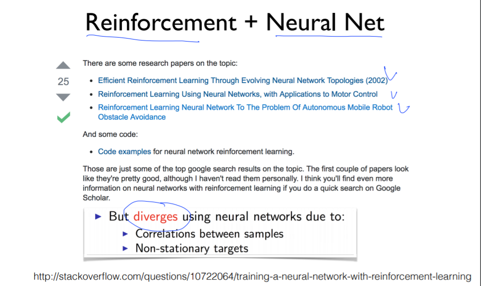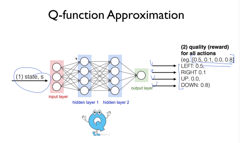 하지만, 신경망에서는 테이블과 다르게 Q값이 수렴하지 않는다. -> DQN 다음 강의에서 자세히 다룰 예정이다.