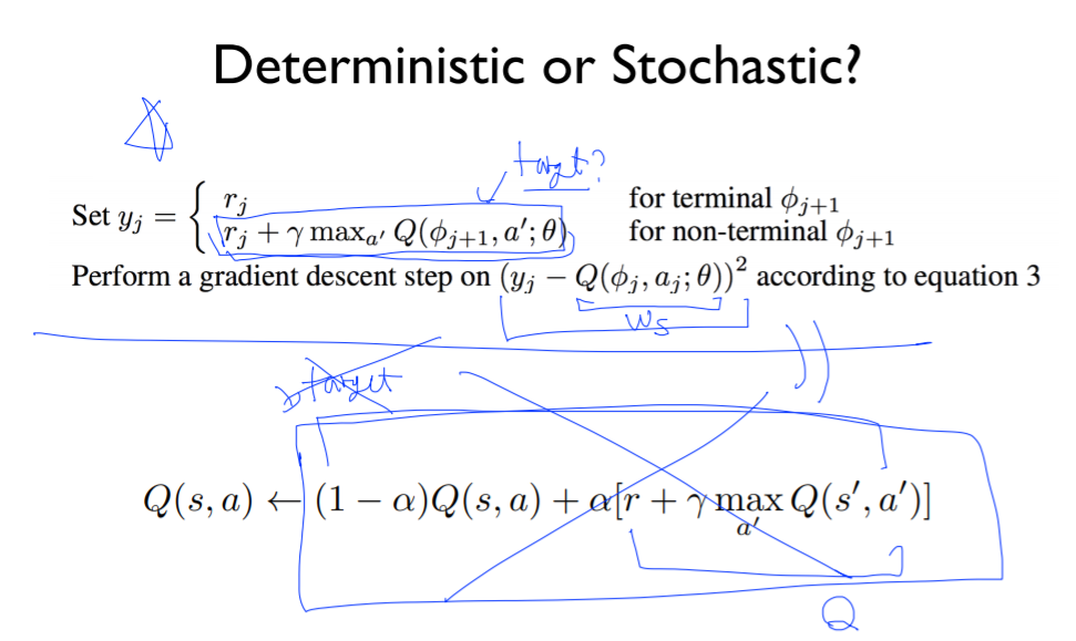 앞선 강의에서 deterministic과 stochastic 상황을 나누어 Q값을 다르게 구하였다.