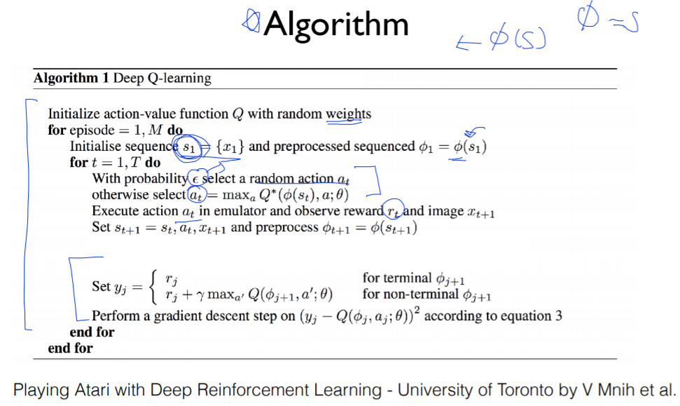 전체적인 알고리즘은 에피소드 M번을 반복하는데, 처음 얻는 state에서는 전처리 과정을 거친다.