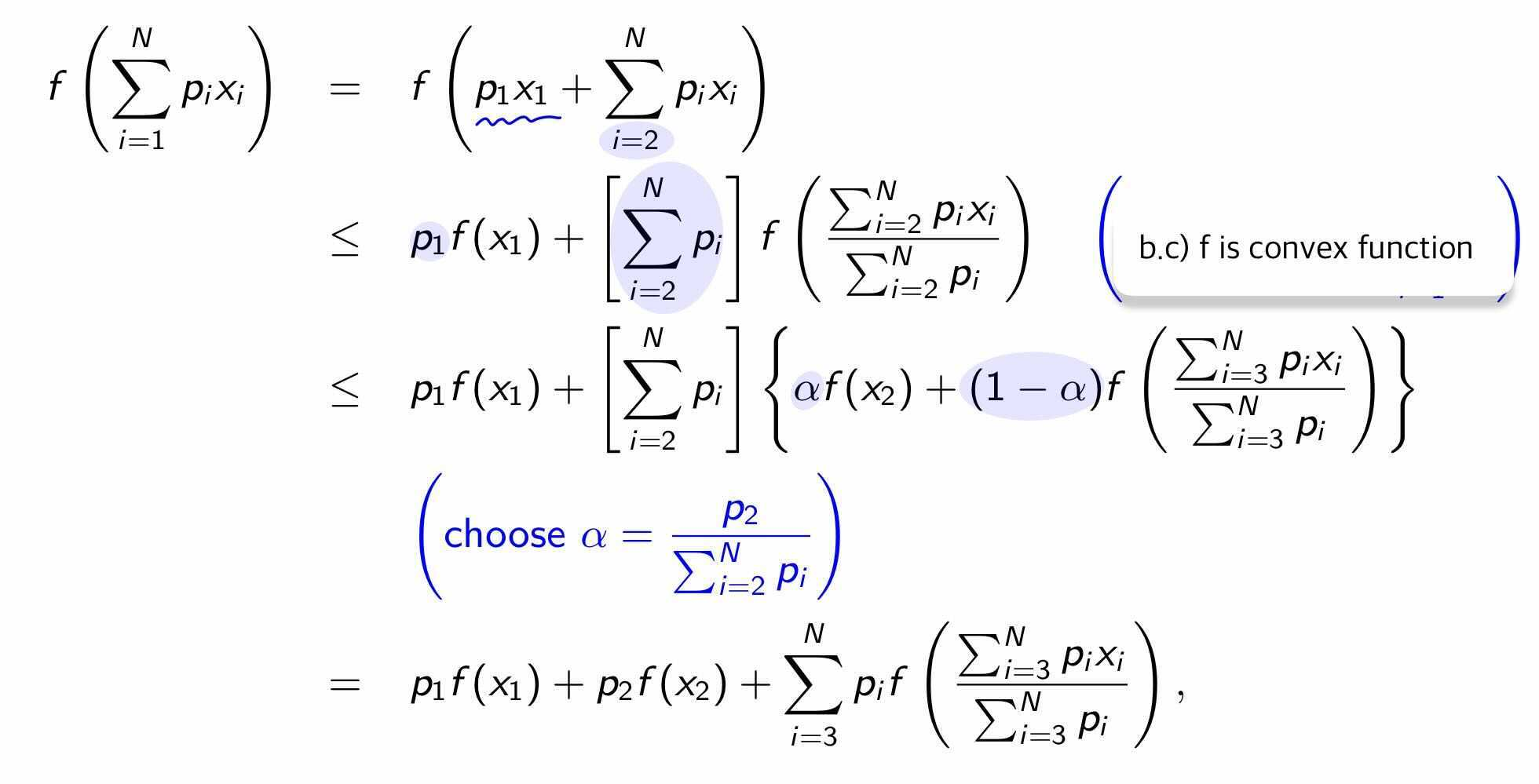 $\color{red}f(\sum_{i=1}^N p_i x_i) \color{black}\leq \color{blue}\sum_{i=1}^N p_i f(x_i)$